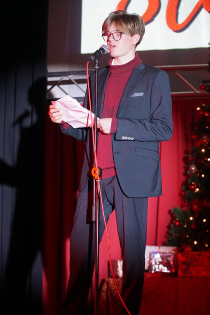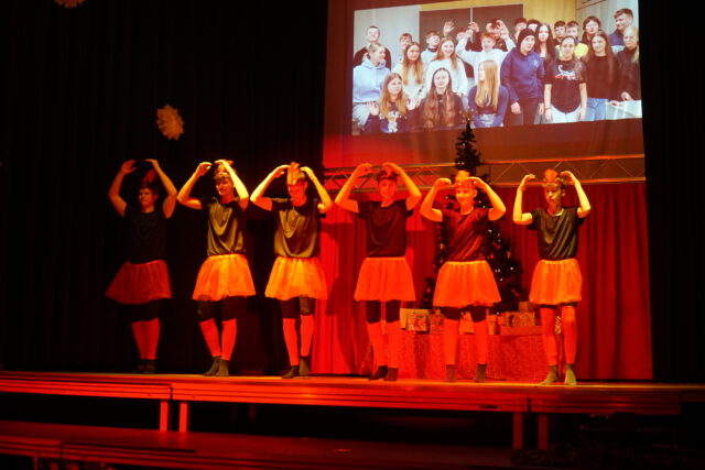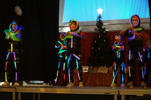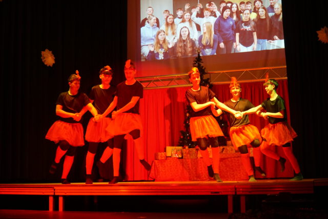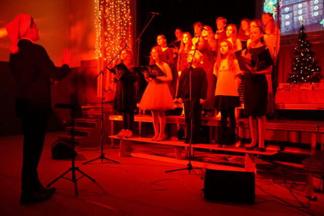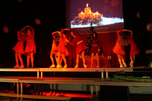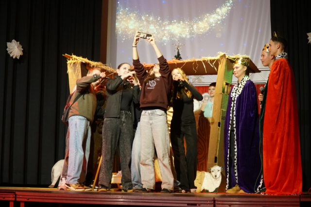 Auch musikalisch und tänzerisch zeigte sich die enorme Bandbreite des schulischen Talents: Von klassischen Weihnachtsliedern des Chors über Gesangseinlagen der Schülerband bis hin zu ausdrucksstarken Tanzperformances – ob in Bettlaken gehüllt oder mit energiegeladenen Breakdance-Moves – war für jeden Geschmack etwas dabei. Bei weihnachtlichen Gedichten und beim Poetry Slam bewiesen die Schülerinnen und Schüler zudem eindrucksvoll ihre Wortgewandtheit. Die kreativen Ideen kannten an diesem Abend keine Grenzen: Eine Gesangseinlage der „Fire Socks“ – liebevoll gestaltete Sockenpuppen – brachte die Halle ebenso zum Lachen wie die moderne Neuinterpretation der Geburt Jesu, bei der die heutige Jugend auf Maria, Josef und die Heiligen Drei Könige traf.